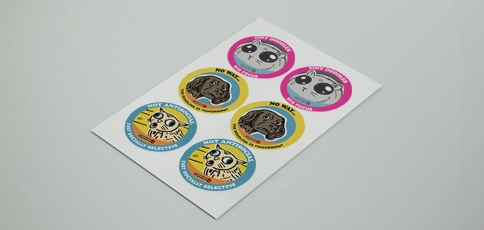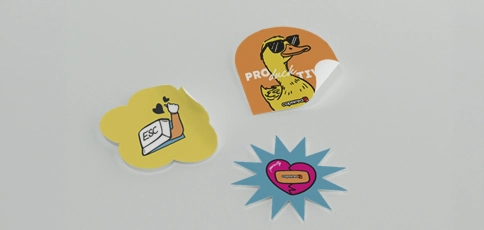 Możesz wybrać sposób dostarczenia naklejek: na arkuszach lub pojedynczo. Arkusze przypominają format A4 z kilkoma naklejkami ciętymi metodą „kiss cut” — idealne, jeśli chcesz odklejać je w razie potrzeby. W opcji pojedynczej każda naklejka będzie osobno wycięta i gotowa do użycia.